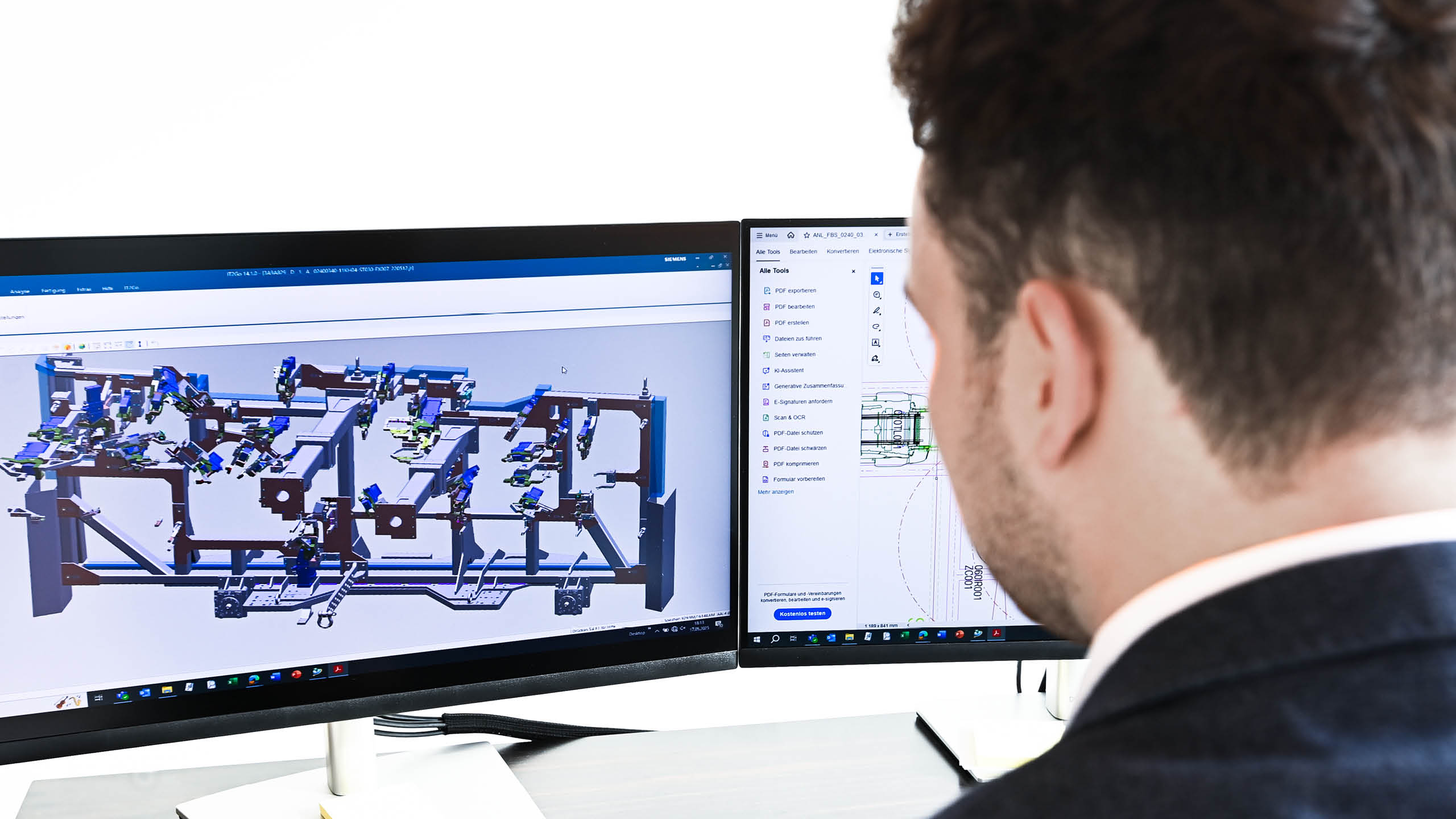 Unsere Teams decken alle Kompetenzbereiche ab: von der Konstruktion und Simulation (z. B. CAD, CAE, Robotersimulation) über die Entwicklung von Betriebsmitteln (Vorrichtungen, Greifsysteme) bis hin zur Prozessautomatisierung. Alle Projektbeteiligten arbeiten eng vernetzt zusammen. Das gewährleistet kurze Entscheidungswege und eine reibungslose Kommunikation.